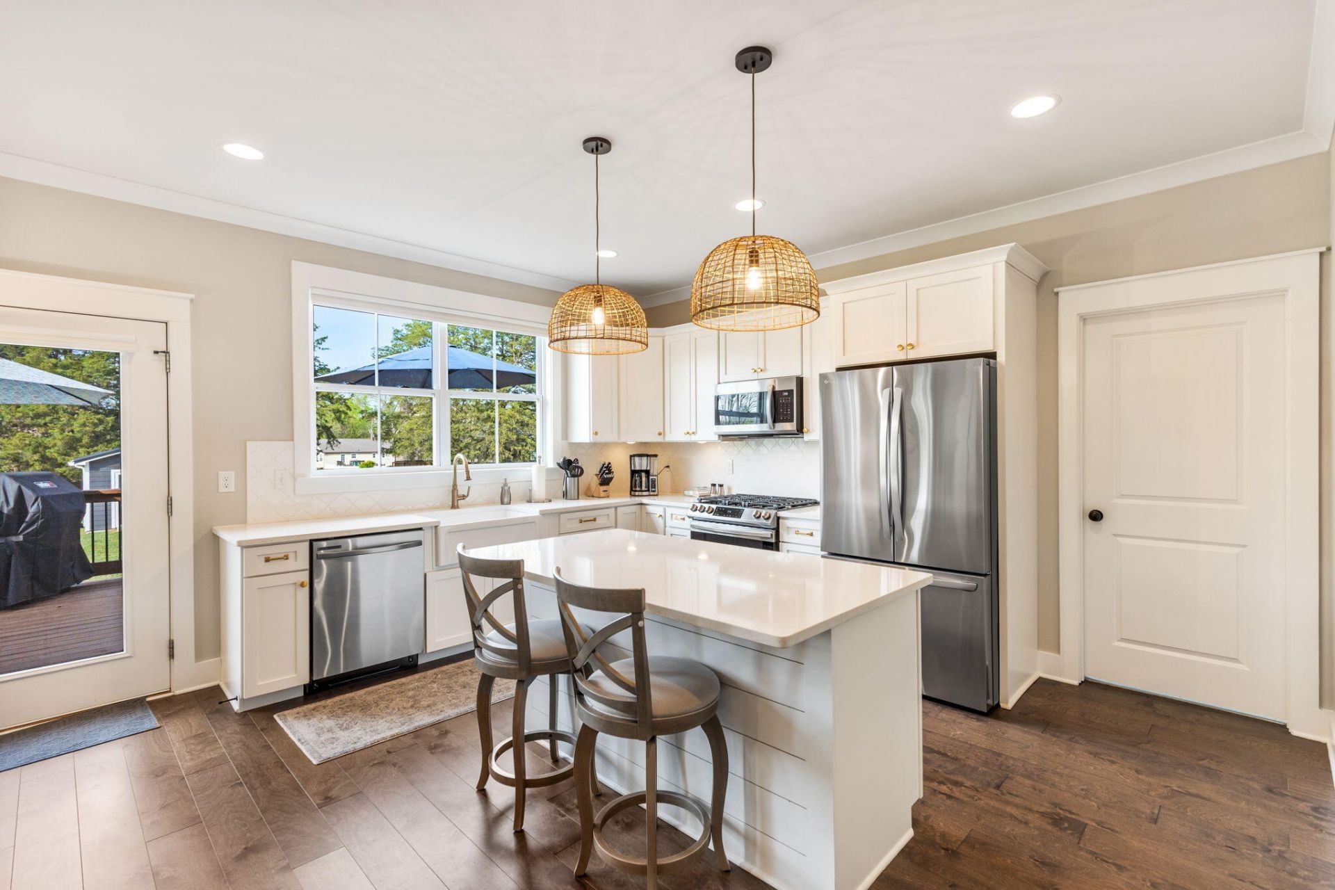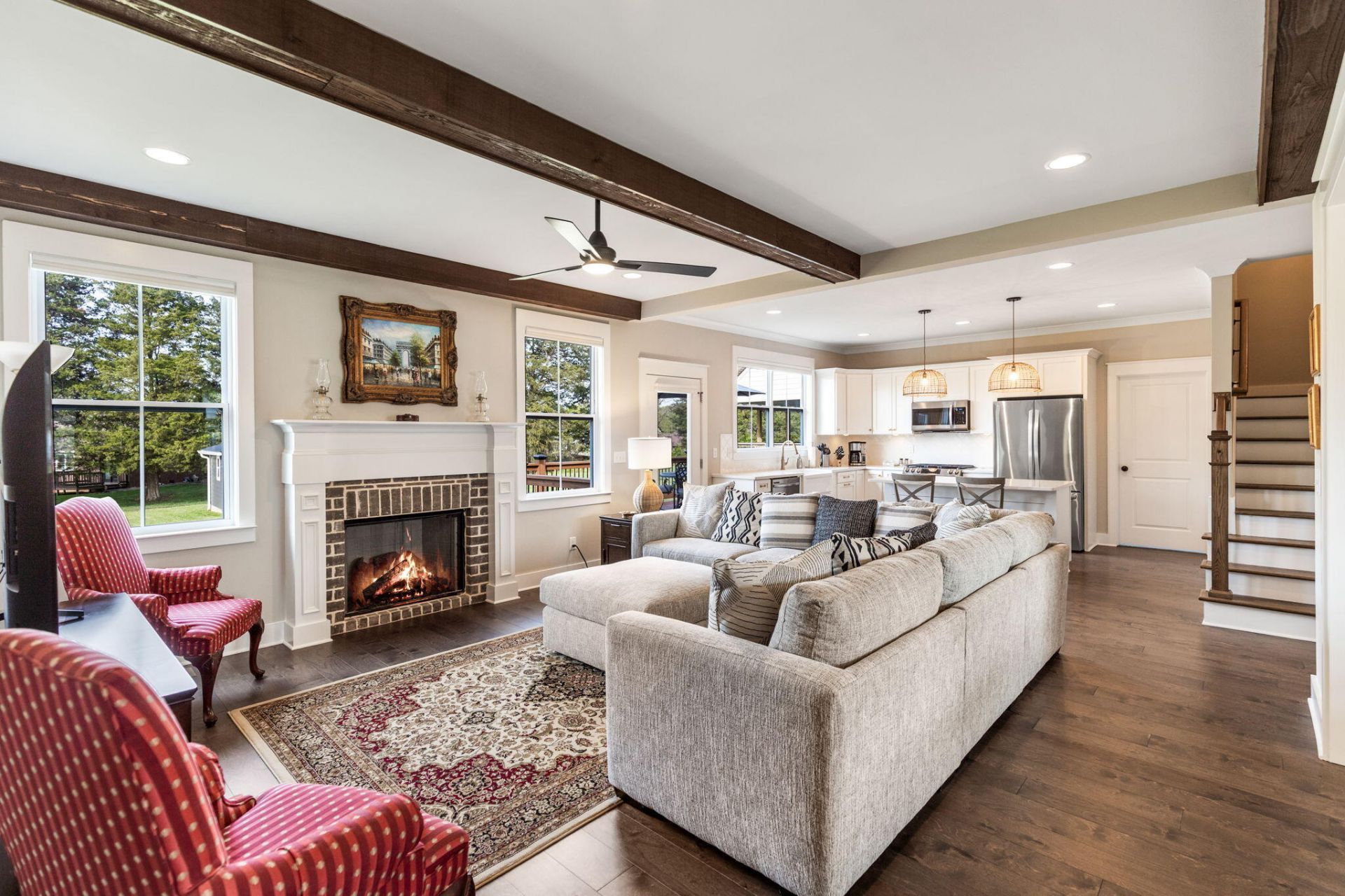 Built in 2023, this meticulously maintained home offers a like-new feel and is beautifully positioned on nearly half an acre in the gorgeous Harvest Grove subdivision in the NW Cleveland area. Thoughtfully designed with both comfort and style in mind, the main level features an open-concept layout enhanced by rich engineered hardwood flooring, detailed moldings, and a stunning great room with exposed beams and a natural gas fireplace that creates a warm, inviting focal point.The kitchen is both elegant and functional, featuring quartz countertops, an oversized island with bar seating, a ceramic tile backsplash, gas range, soft-close cabinetry, and an expansive walk-in pantry. A separate dining area provides the perfect setting for gatherings, whether casual or more formal.The main-level primary suite offers a peaceful retreat with a spacious walk-in closet and private bath. A well-appointed laundry room and convenient half bath complete the main level.Upstairs, you'll find two additional bedrooms plus a versatile bonus room, along with a full bathroom--ideal for guests, a media space, or home office flexibility.Interior finishes include engineered hardwood in the main living areas, ceramic tile in bathrooms and laundry, and carpet in the bedrooms. A tankless gas water heater adds both comfort and efficiency.Outdoor living is just as inviting, with a large deck overlooking a spacious backyard--perfect for entertaining, relaxing, or enjoying the privacy of your nearly half-acre lot.